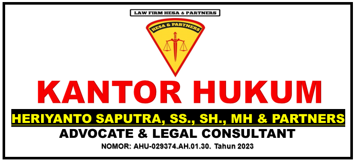 Hesa Law Firm, led by Heriyanto Saputra, S.S., S.H., M.H. as Managing Director, is a lawyer of Criminal Law, Private Law, Constitutional Law, Corporate law, Property Right Law, Legal Philosophy.